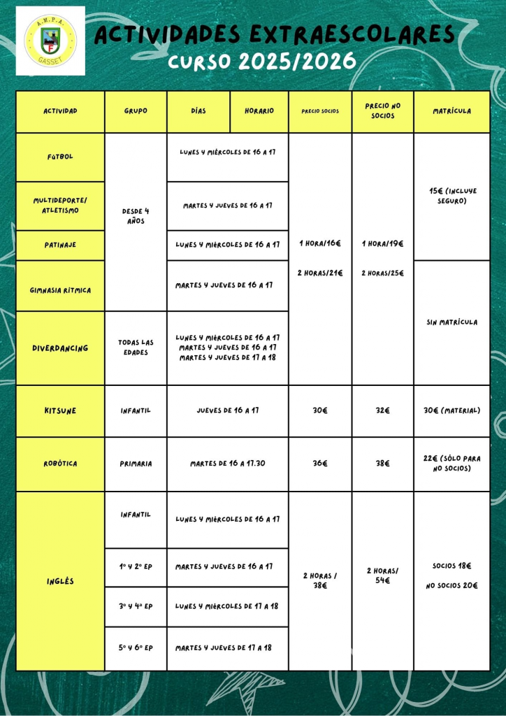 Para más información podéis contactar con nosotros a través del correo ampa.gasset@gmail.com