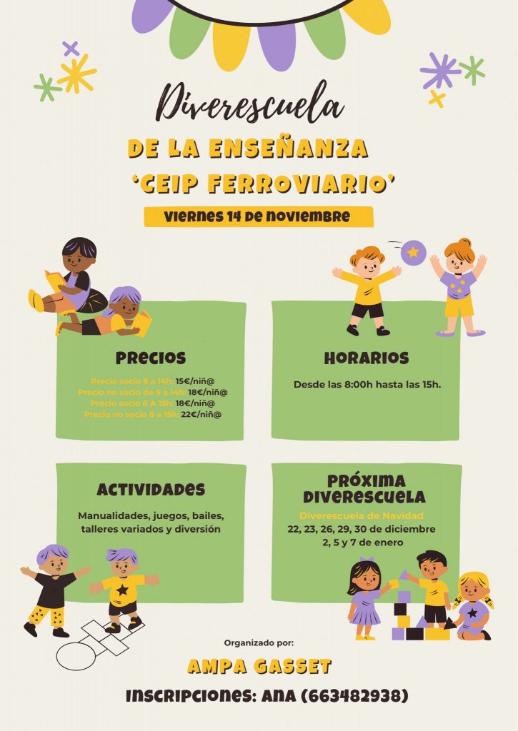 Os dejamos la información de horarios y precios relativa a la primera DIVERESCUELA del curso.