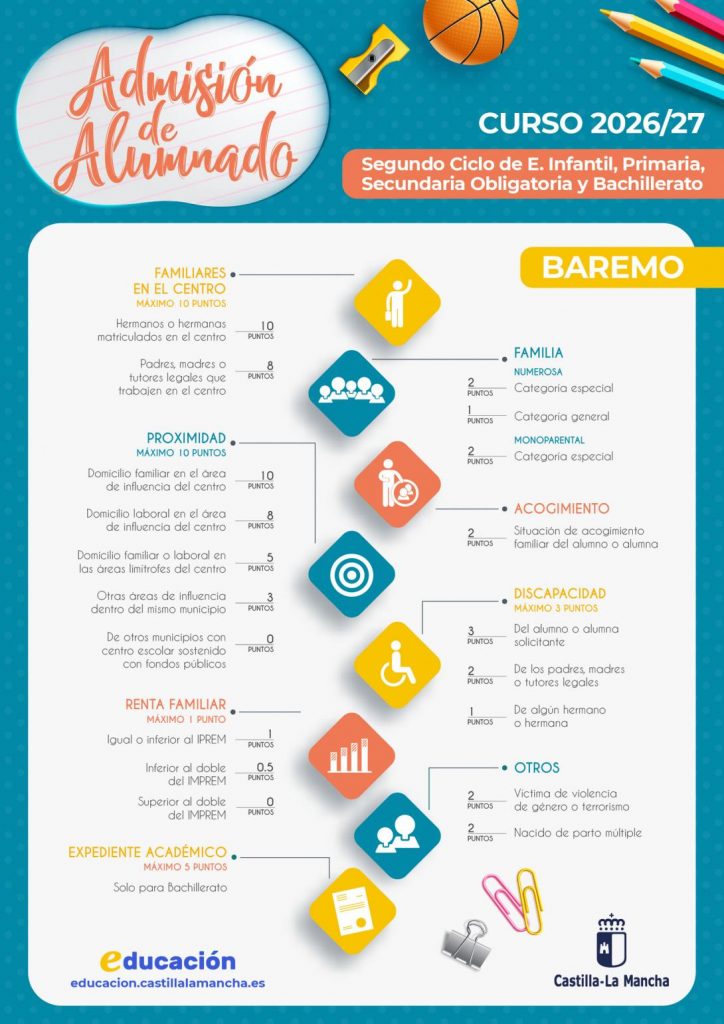 Toda la información en el portal de Educación de la Consejería: https://educacion.castillalamancha.es/admision-de-alumnado/obligatorias