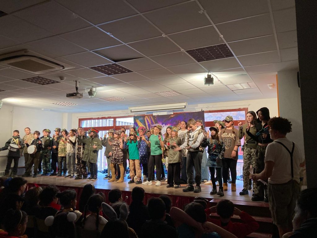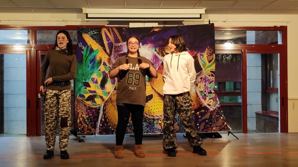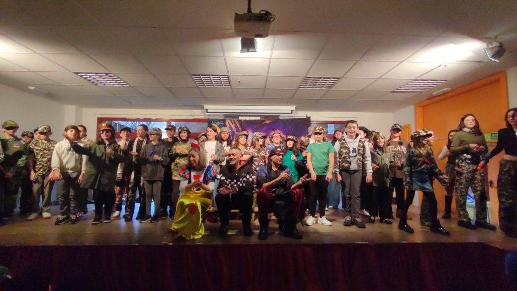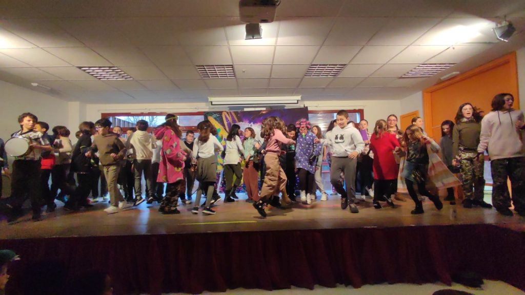 El viernes 13 de febrero los 45 alumnos y alumnas de sexto que componen la chirigota del colegio actuaron ante el alumnado y profesorado del centro.